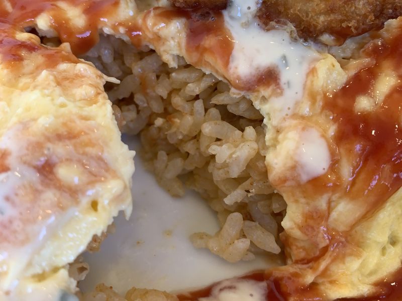 ハントンライスの名の由来?となっているカジキマグロのフライがトッピングされています。エビフライは乗せられていませんでした。