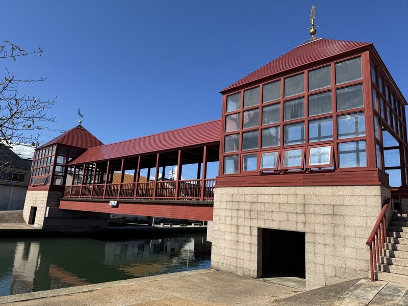 場所は、こちらの切妻屋根の付く歩行者・自転車用橋「東橋」のすぐそばにある「uchikawa六角堂」。