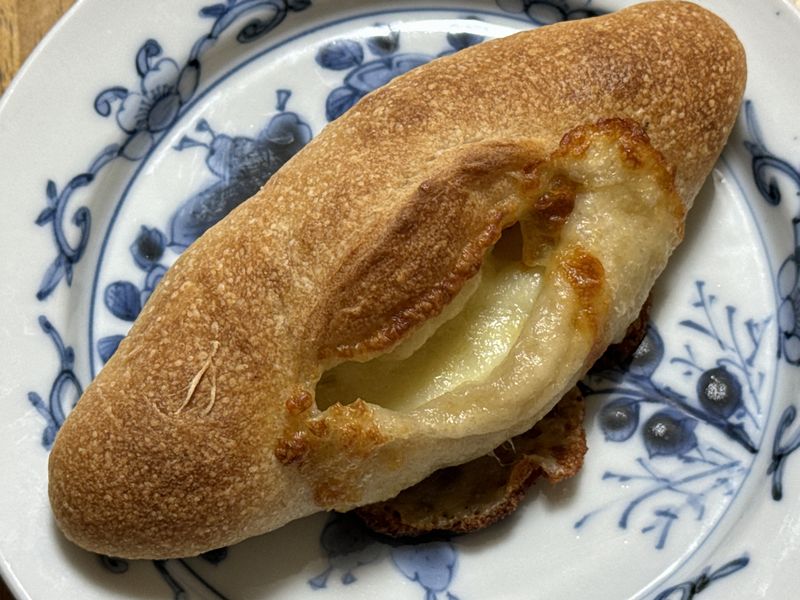 弾力のあるハード系というような感じで、それほどチーズチーズしているわけではありませんが、温めて食べると全粒の生地なので小麦とチーズの風味が口の中に広がりました。