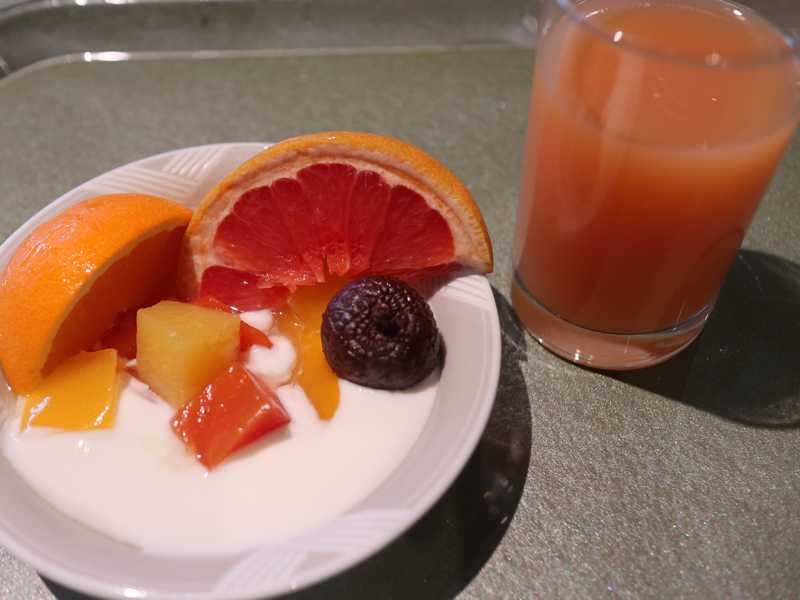最後にヨーグルトフルーツ、そしてオレンジジュース。