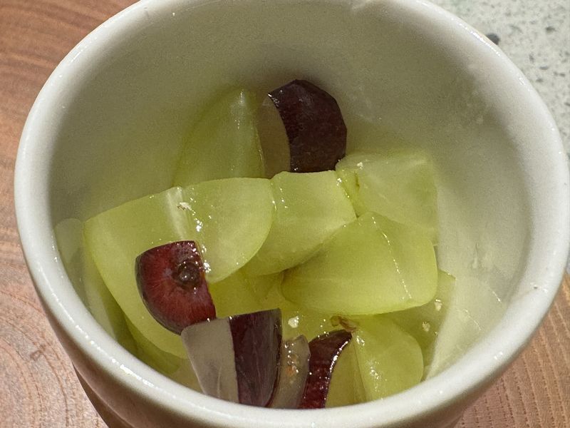 ここで出てきたワインは「パルティ・フィーヌ(Partie Fine)2021」白。ナチュラルワインで軽めの口あたりでしたが、フルーティで料理の味を引き立ててくれていました。