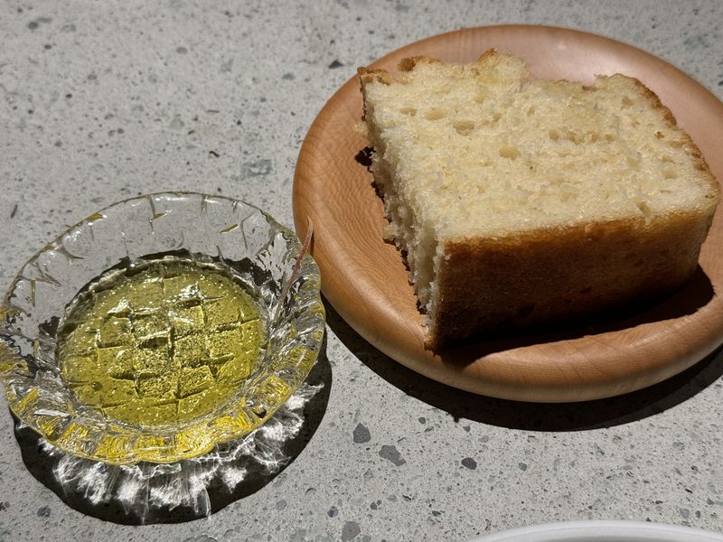 ここで自家製フォカッチャがフレッシュなオリーブオイルと共に出されました。
