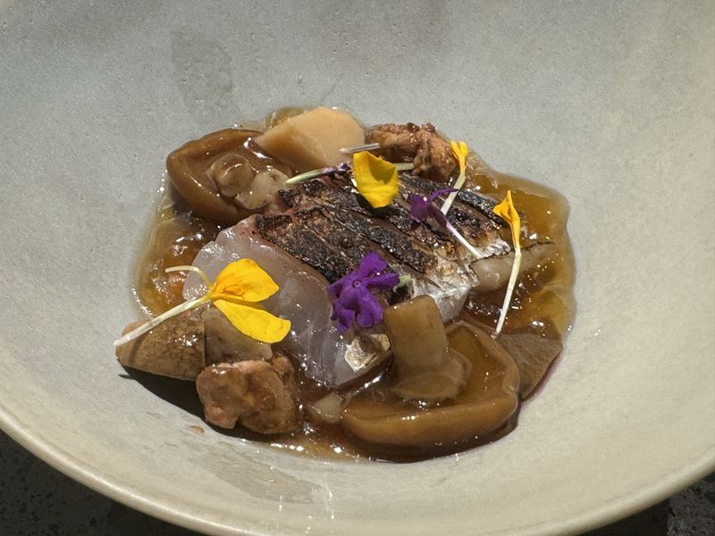 私は鶏が苦手と伝えてあったので、鯛に変えてくれました。皮目が炙られて香ばしかったです。