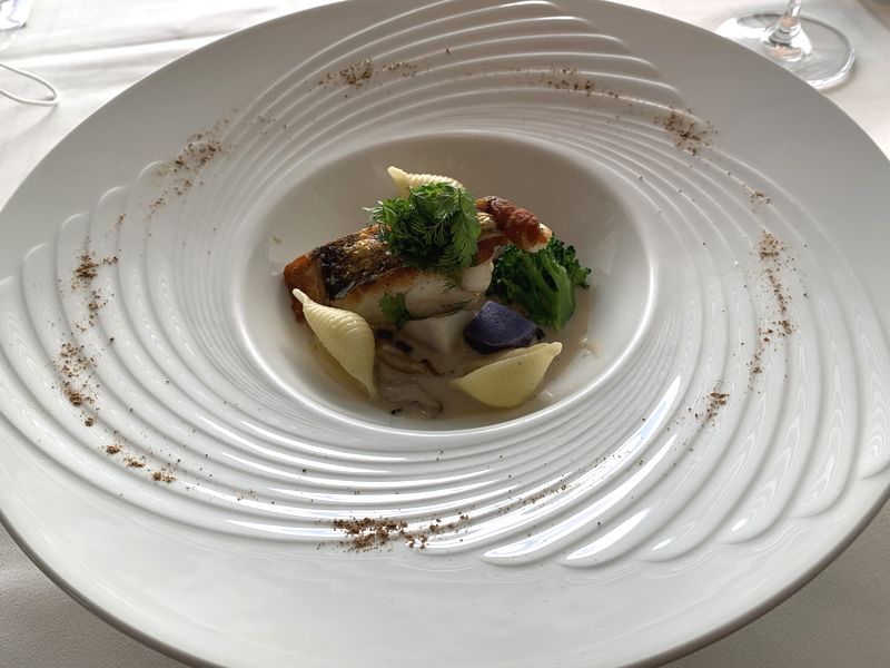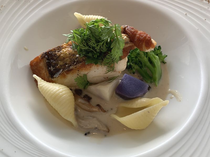 魚料理は「横浜中央市場から届く鮮魚のポワレ キノコクリームソース ショートパスタと一緒に」です。