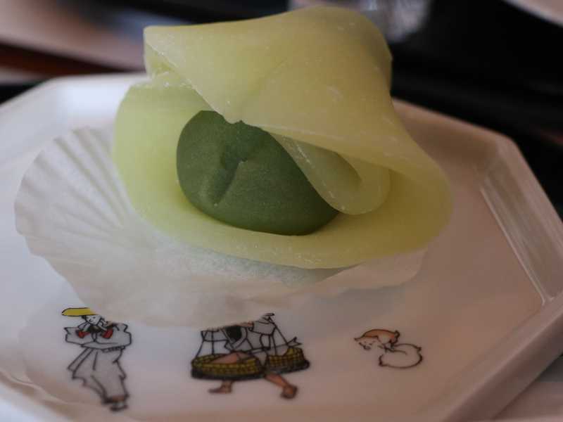 お菓子は月替わりで、基本、上生菓子の品揃えです。妻と義母はういろうを使った「銀杏」という上生菓子を。そして飲み物は妻は抹茶、義母はコーヒーを頼んでいました。