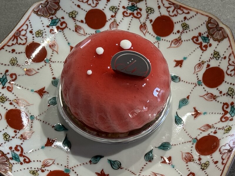 中には木苺とビスタチオが使われていました。イチゴの酸味で甘さも控えめ。滑らかで口当たりのいいケーキでした。