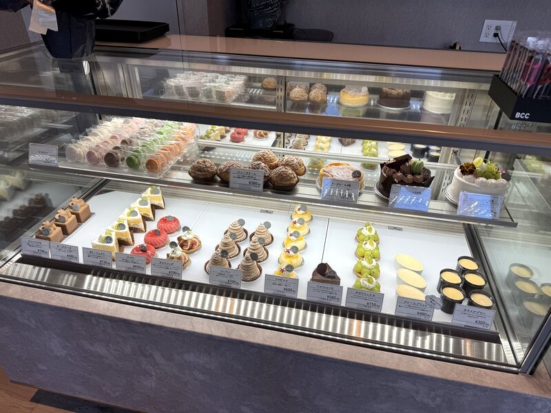 入って左側に焼き菓子。正面にはケーキ類が置かれていますが、なかなか多くの種類が並んでいました。