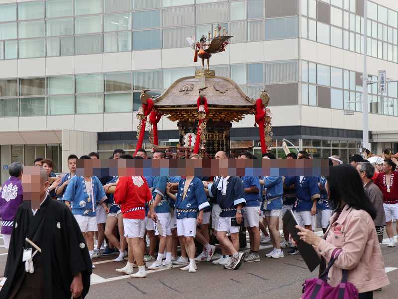 昨年は悪天候で中止になり、その前はコロナ禍で規模や内容も縮小を余儀なくされる期間が続いていましたが、今年は7年ぶりの8基すべての曳山が勢揃い!本当に久しぶりでした。