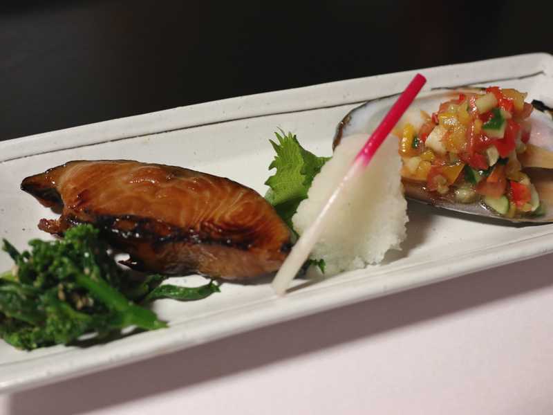 そして鮭とタラを合わせて、豆乳と生姜仕立ての汁で仕上げてあります。上品ながら色々な食材の滋味がにじみ出ていて美味しいです。