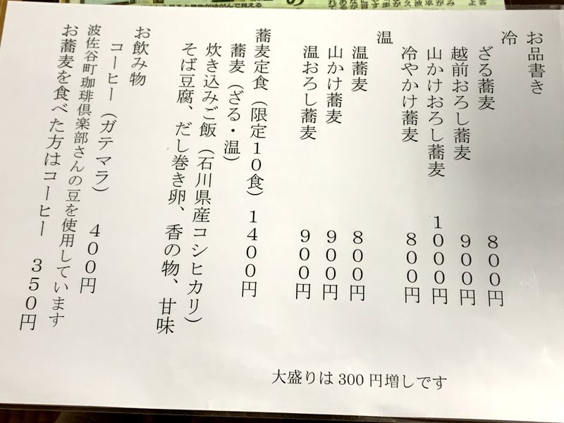 「池田流手打ちそば」と書かれていて、そばでも有名な福井県今立郡池田町でそば打ちを学んだようです。