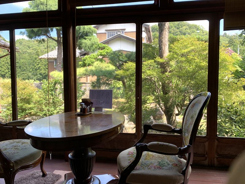 こちらの庭に面したガラス戸には大正ガラスが使われていると、新聞記事に書かれていました。
