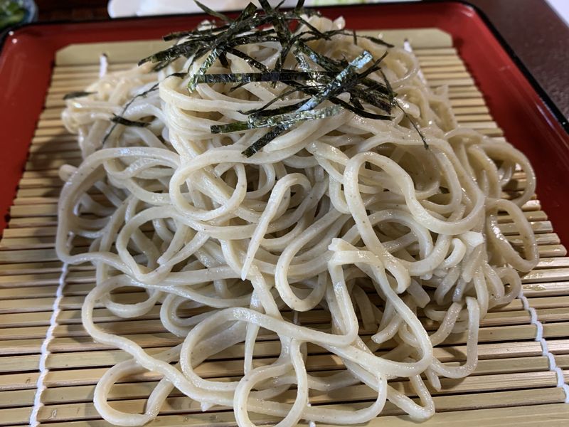 そばは外二(そば粉10に対して小麦粉2の割合)で打たれています。見た目きれいなそばです。そばの風味も感じました。ただ、少し長かったです。つゆにつけるときも食べるときも少々食べにくさがありました。個人的には、もう少し短めの方がうれしいかな?