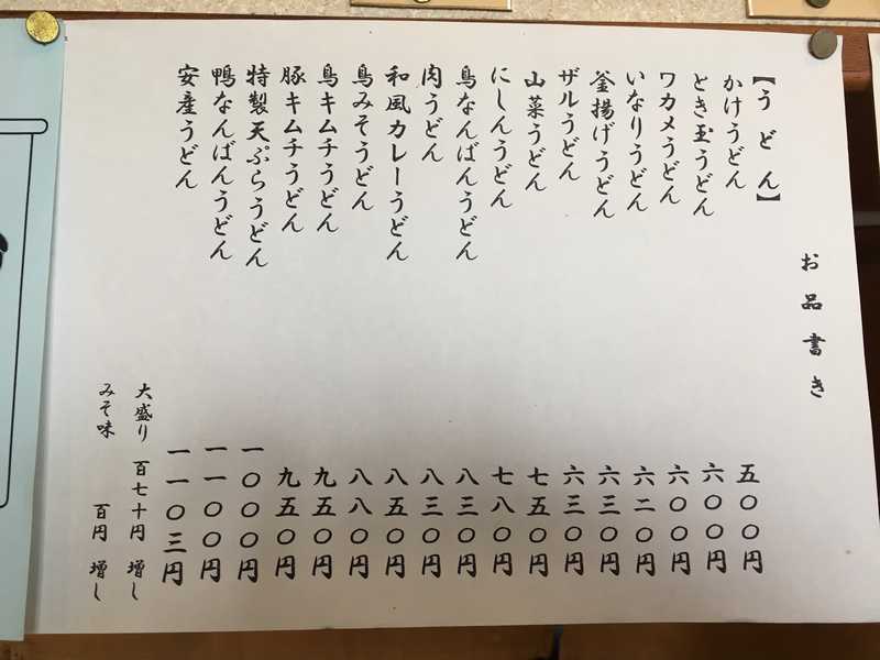 お品書きです。