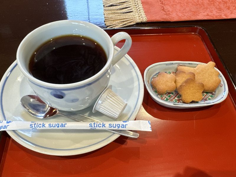 妻のほうのドリンクは「橋立船主五人衆珈琲(600円)」という面白いネーミングのコーヒーがあったので、その中の一番深煎りの「久保彦兵衛」を頼んでいました。