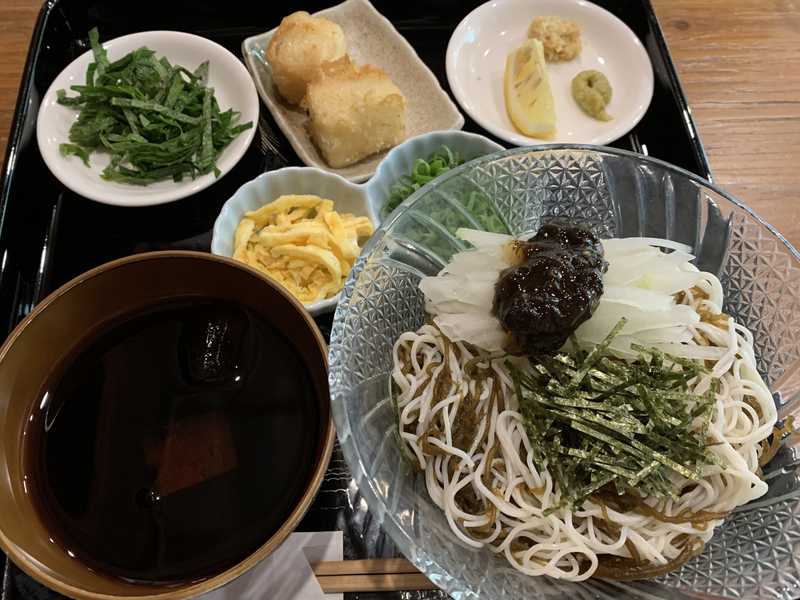 こちらは単品ではなくおかずが付いていて薬味類もたっぷり。