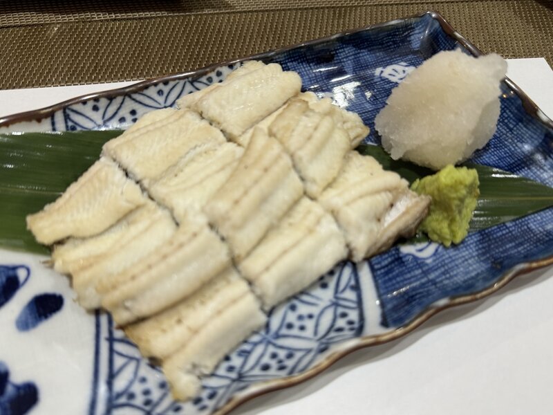 最後に広島県産の地穴子を使った白焼が出されました。一人でこの量なので満足。白焼はウナギの時と同じくわさび醤油でいただきます。
