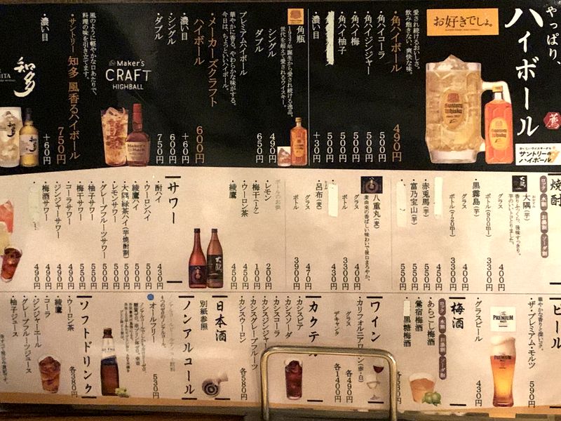 ドリンクメニュー。