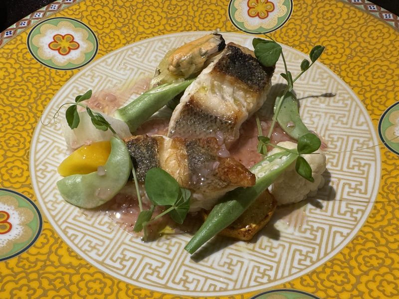 私は魚で「能登の市場直送 お魚料理 シェフの想い」。この日はスズキのポワレでした。たくさんの野菜が添えられていて、味の方もGood!