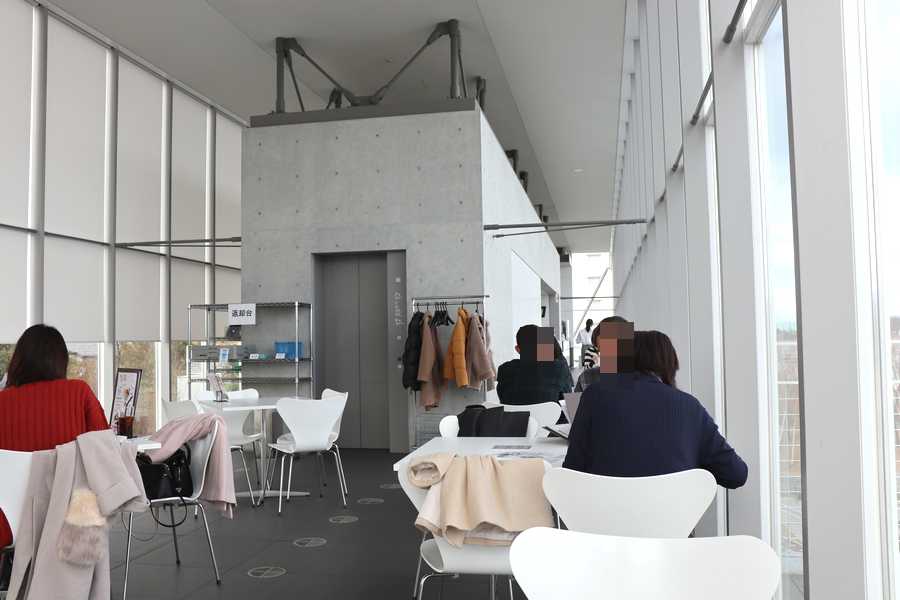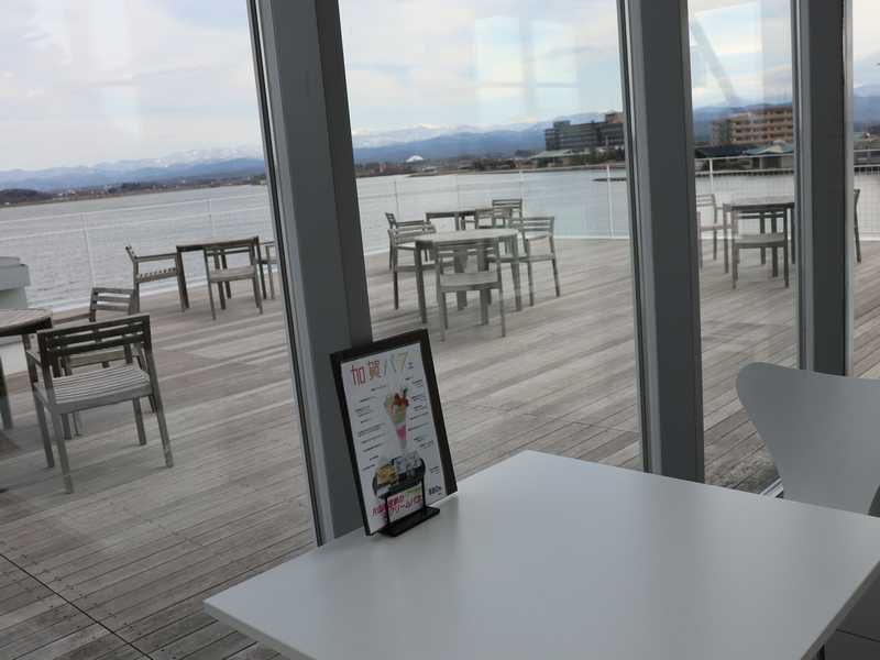 オープンテラス席から柴山潟と白山を眺めながらお茶をすることが出来るのがウリですが、今の時期は寒くて、前回行った時のようにオープンテラス席に出てお茶などできませんね。いまはカフェとの間の扉も締められていました。