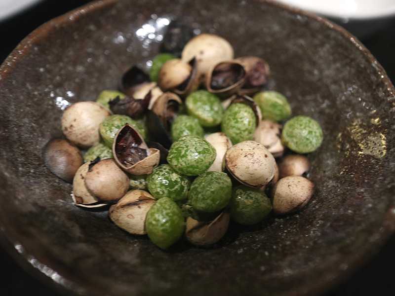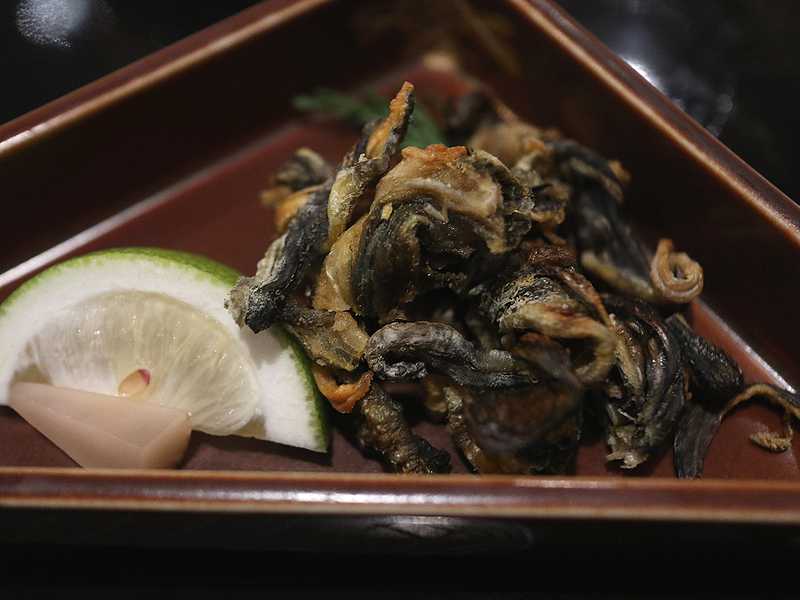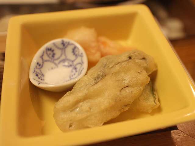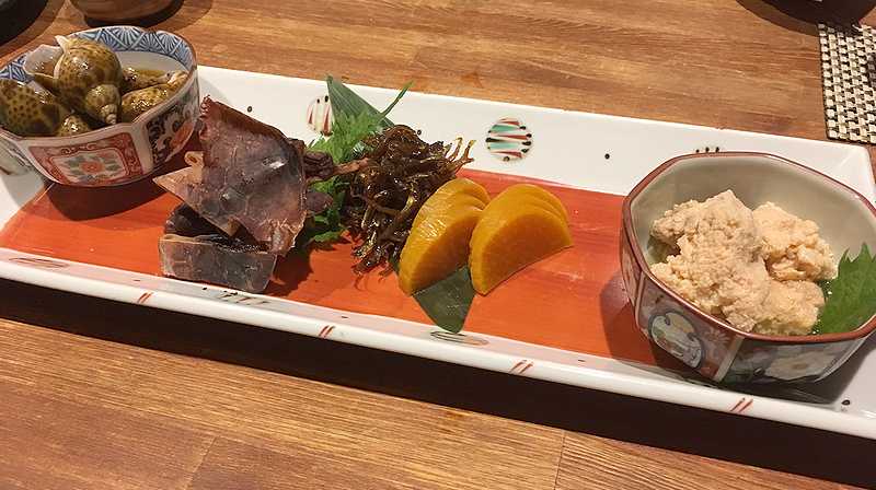 香川でへしこが食べられるとは思いませんでした。添えられている大根スライスと一緒に食べると、辛さが少し和らぎます。