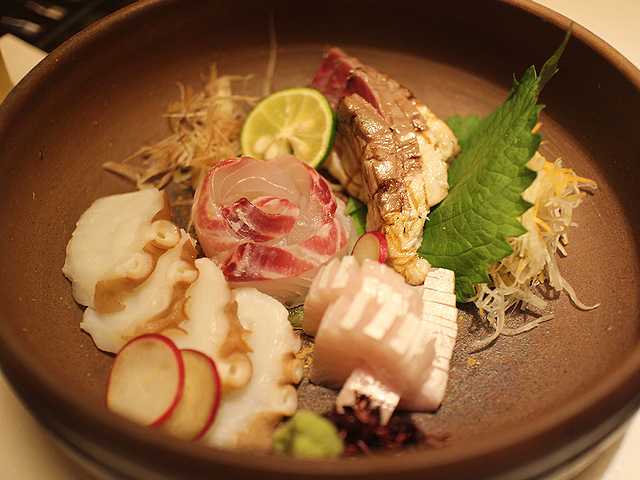 刺身の盛り合わせは4種類で、カツオ・〆鯖・天然鯛・タコでした。どれも新鮮で美味しいお刺身でしたね。