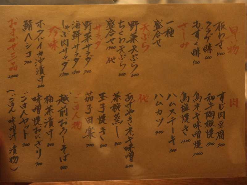 お店のウリは、ご主人の出身地の福井からわざわざ取り寄せている新鮮な魚介と、福井のご当地グルメを楽しめること。ちなみにご主人はホテルの和食料理店で長年腕を磨いていたようです。