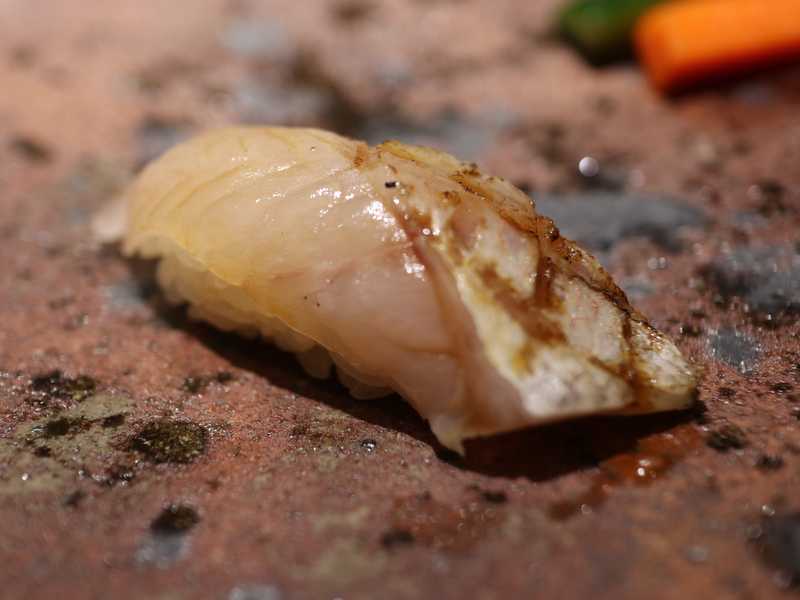 ノドグロは地物ではありませんでした。軽く炙って握られています。