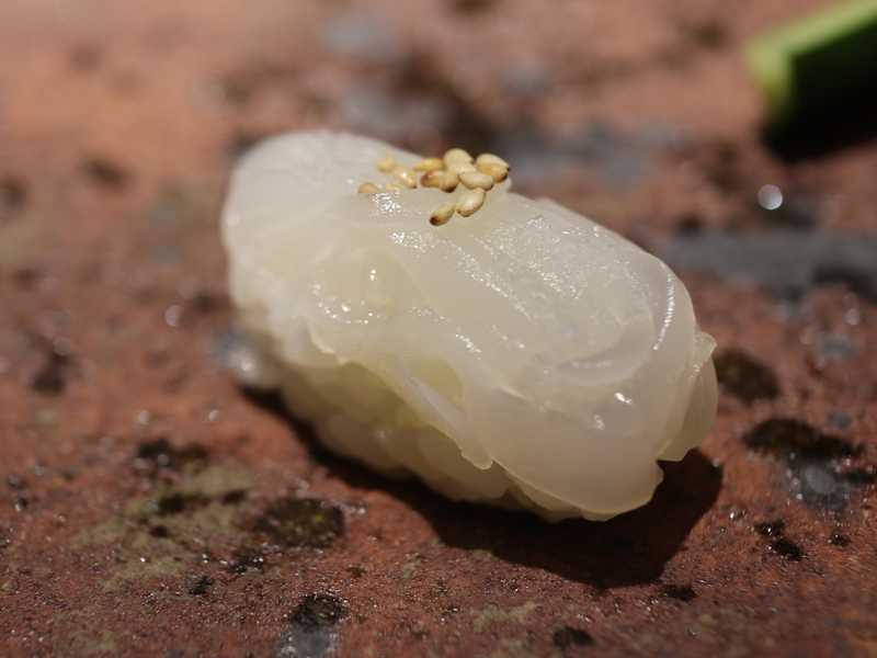 そしてすぐに握りへ。握りはすべて何らかの仕事がされていて醤油をつけずに食べる鮨です。