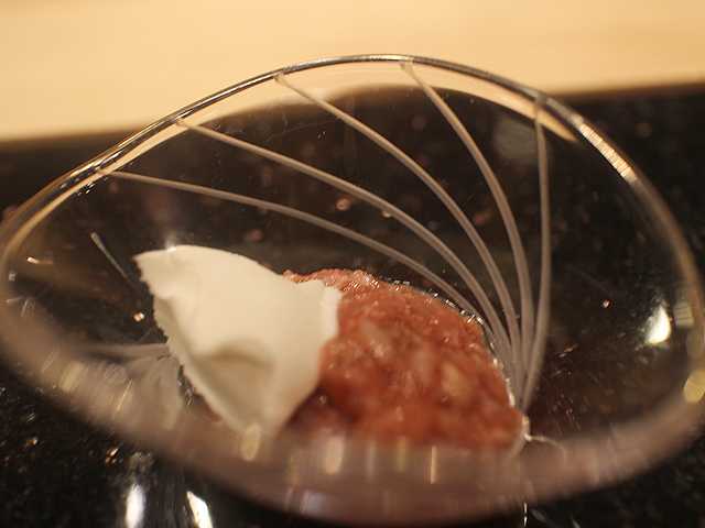 お店の特徴はタイトルにも書いていますが、「鮨 ワイン 小料理」のアンサンブル。もちろん、日本酒も楽しめるのですが、握りの前に出される小料理がなかなか一工夫されていて、洋のテイストを取り入れた品々が多かったです。
