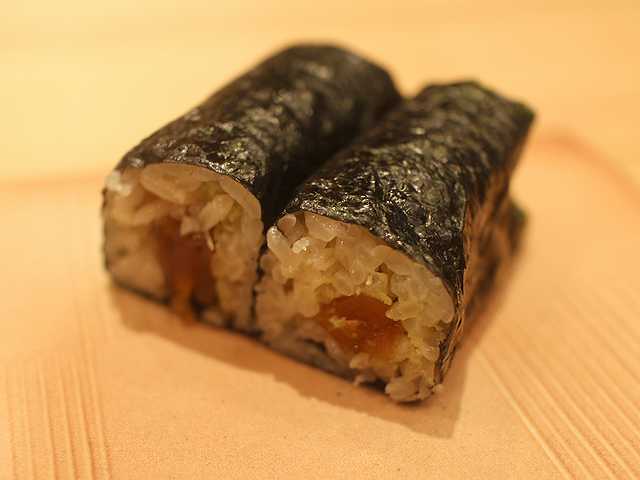 ウナギの手巻き。香ばしく炙られて美味しいです。