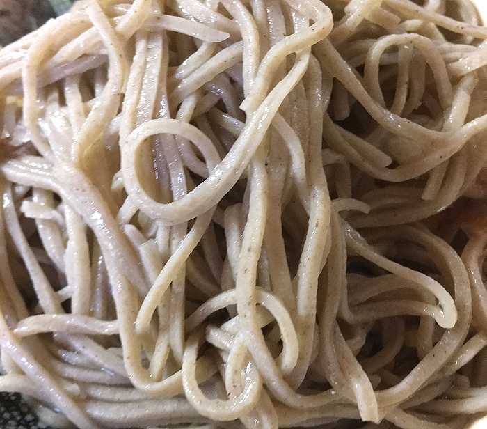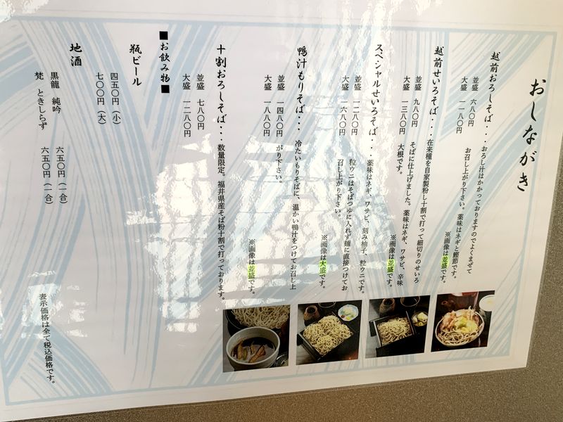 「福井県産と北海道産のそば粉をブレンドした打ち立ての十割蕎麦」で、強いコシがあって風味を強く感じます。人気なのがわかりますね。