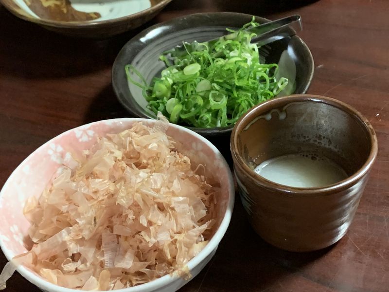 ネギと削り節、大根おろし入りの特製だしは各別盛りで出されます。