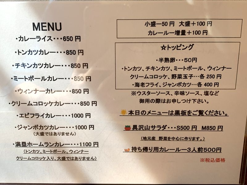 カレーの味は、前に行ったときにお店の方にお聞きしたら少しマイルドな味に変えているとのことでしたが、もう前の味も忘れてしまった感があり、違いはわかりませんでした。