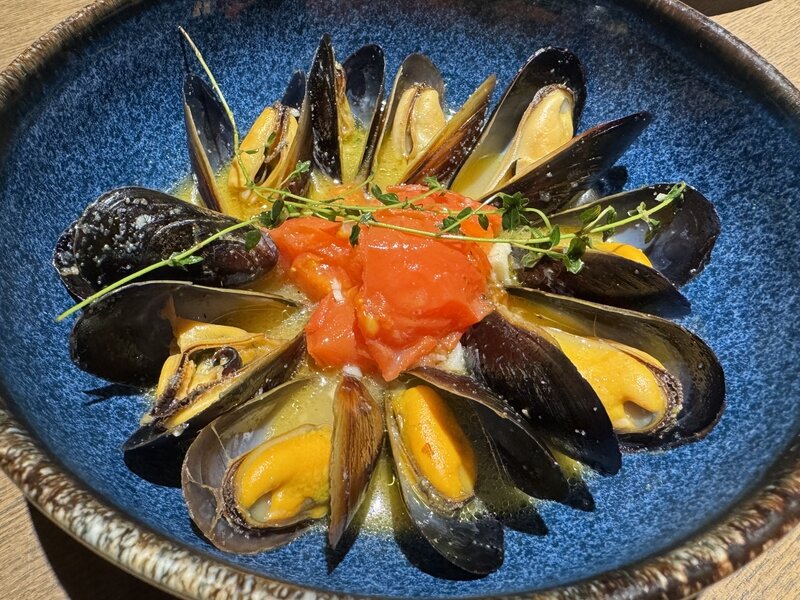 「ムール貝とトマトのワイン蒸し(1690円)」はトマト酸味・甘味・貝のうま味がスープに出て美味しい。