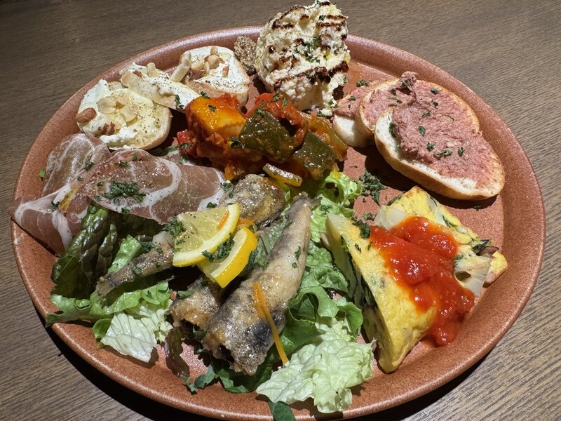 タパスは「生ハム」「エスカベッシュ」「フリッタータ」「フォアグラとコンビーフのパテ」「ハニーチーズ豆腐」「カマンベールチーズスモーク」「カポナータ」かな?間違っていたらごめんなさい。