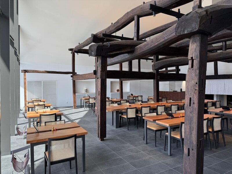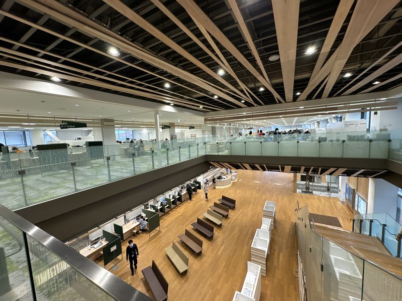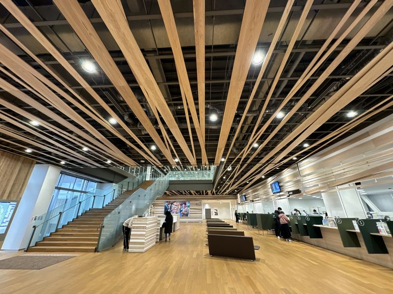 一見木造建築のように見えますが、主要構造部は鉄筋コンクリートで、見える部分に木質パネル建材を使用しています。
