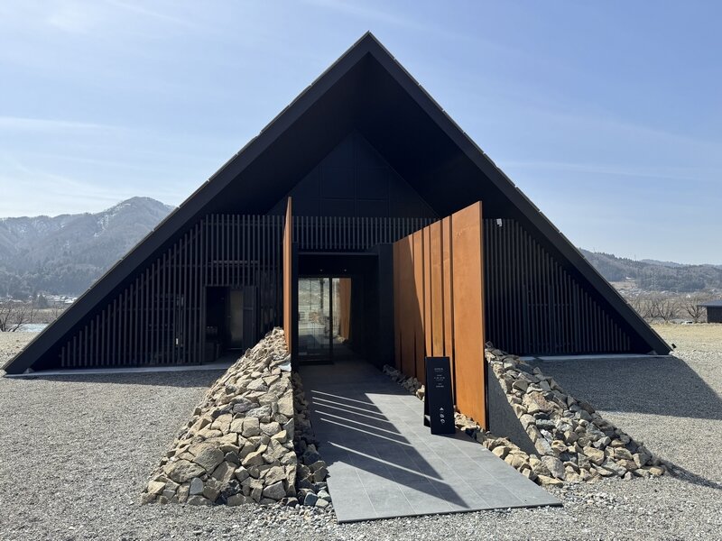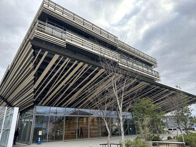 場所は鳥取砂丘の入り口。ご覧のようにとても目立つ、奇抜な造形です。設計は新国立競技場などを手掛けた隈研吾氏。