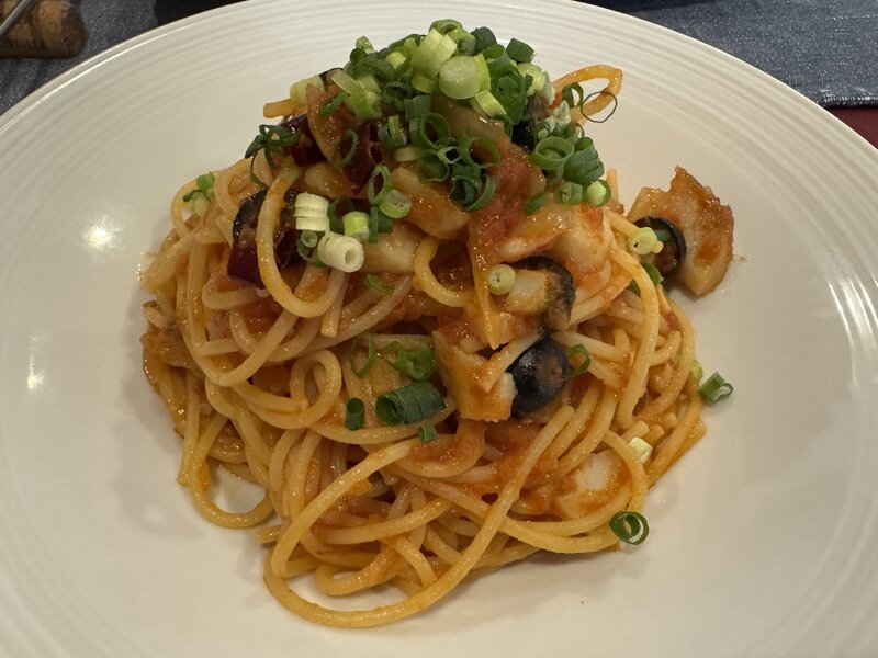 そして「真鱈のガーリックトマトスパゲッティ」。ボリュームがありました。