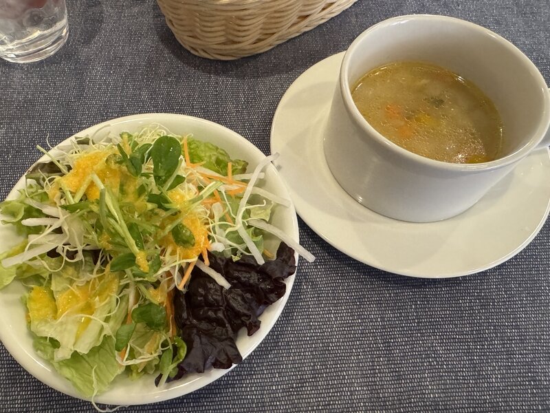 まず、サラダとスープが運ばれてきました。