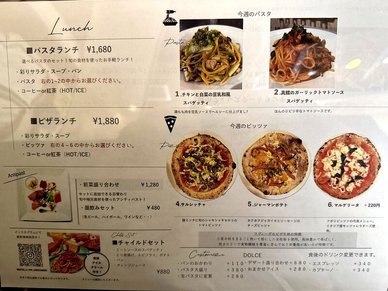 パスタとピザのランチメニューです。