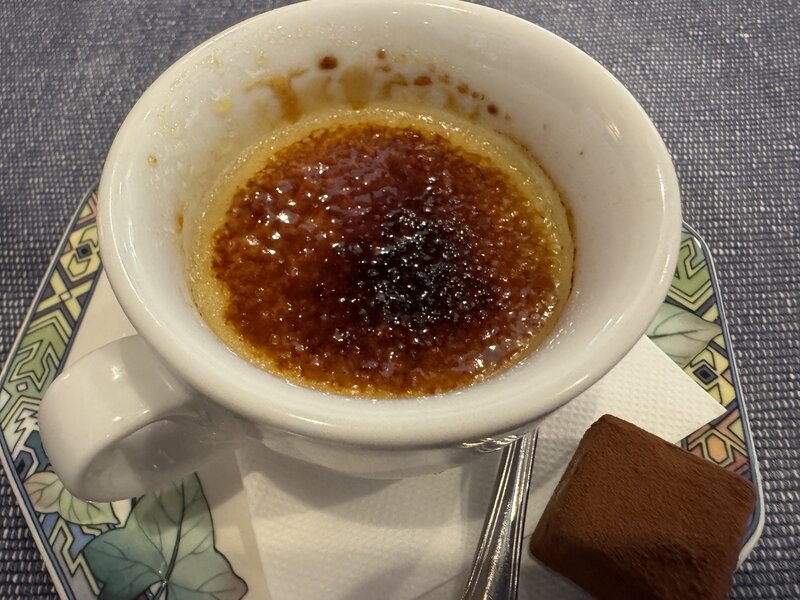あと、久しぶりだったので小中シェフがいらっしゃるかお聞きしたら、わざわざテーブルまで挨拶に来てくださり、さらには、こちらのクリームブリュレと生チョコのデザートまでサービスで出してくれました。ありがとうございました。お元気そうで何よりでした。
