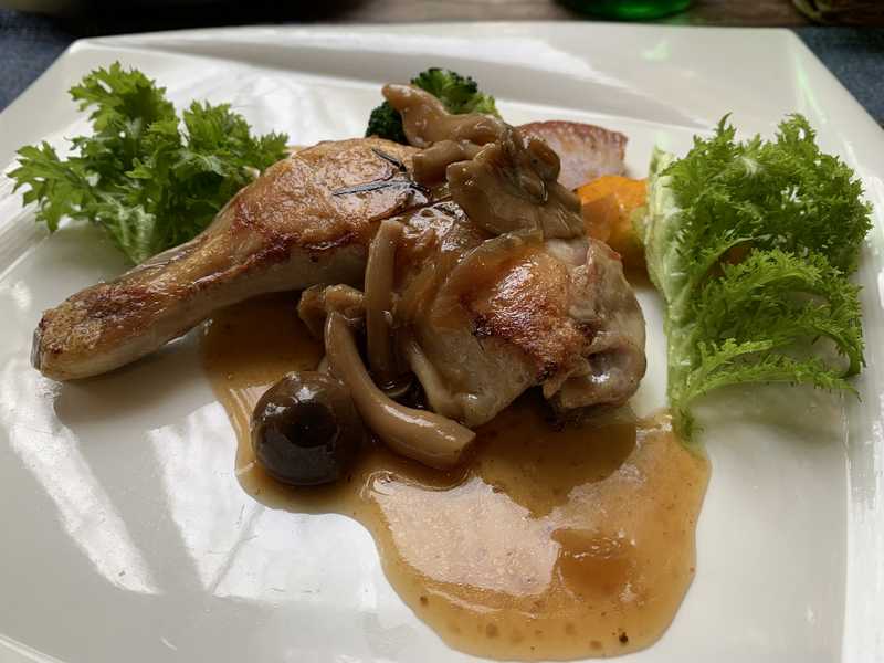 スープは、三国産しいたけのポタージュ。これが美味しかった。何となくポルチーニのスープのような風味で素晴らしかったです。