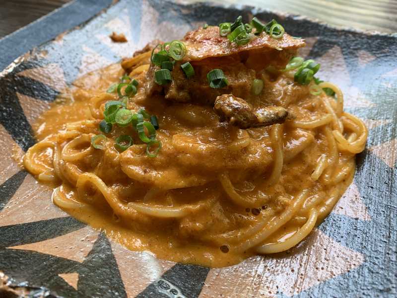 私もひと口食べましたが、アルデンテのパスタとソースにカニの風味が移って美味しかったです。