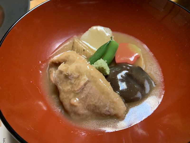 地元三国の食材を使った、肉と魚のバランスのいい前菜で、この日の魚はフクラギでした。