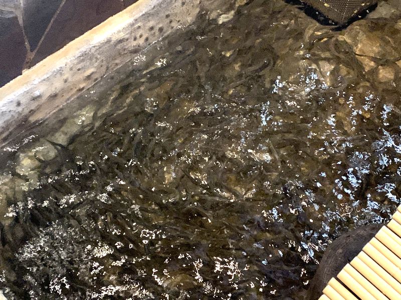 ご多聞に漏れず、近年、天然鮎の漁獲量が減少してきて、このような大きなお店では安定的な供給が見込めないため、必然的に養殖の鮎を使わざるを得ないのです。